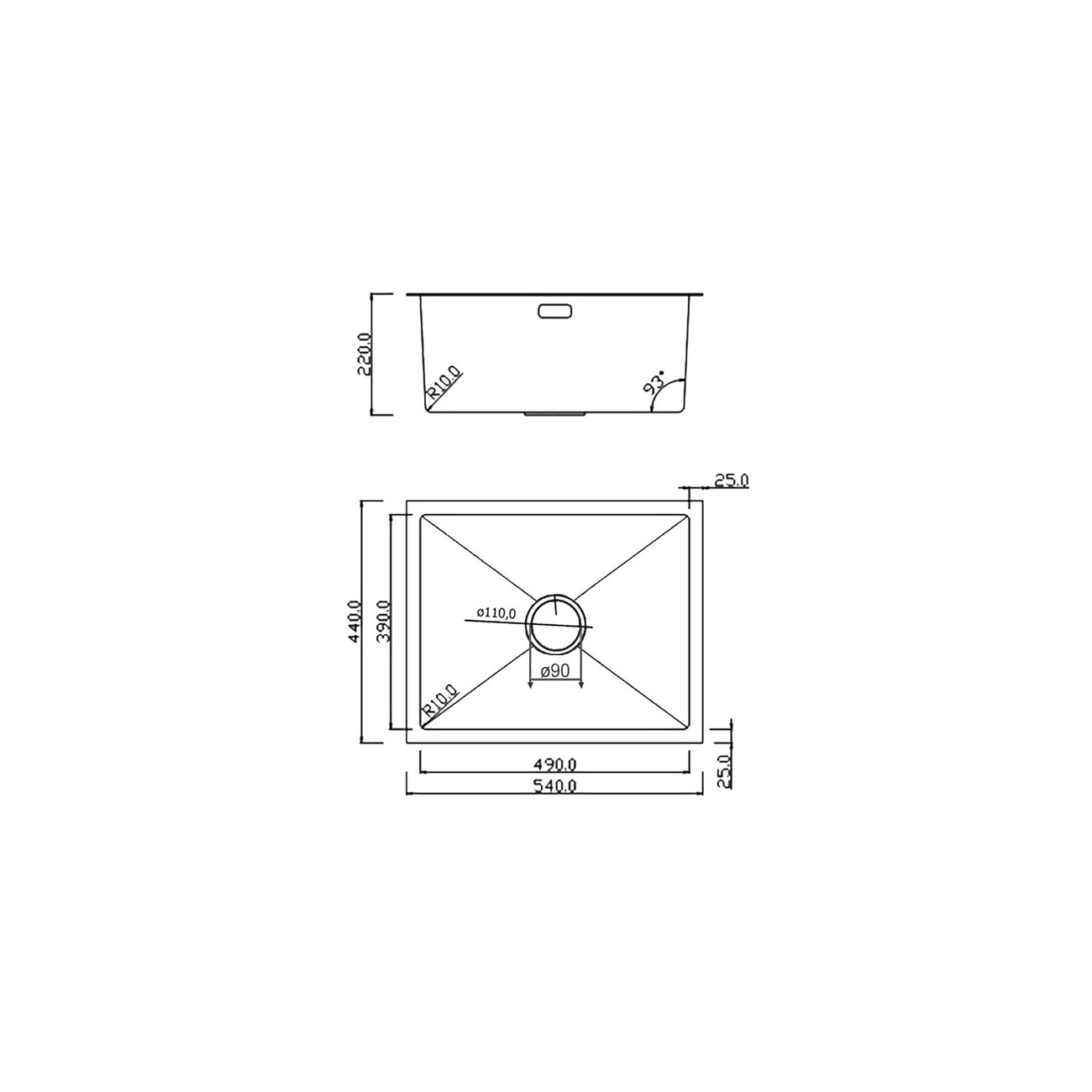 Кухонная мойка RoxenBath (РоксенБаз) Uno 54, сатин, 560210-54-V
